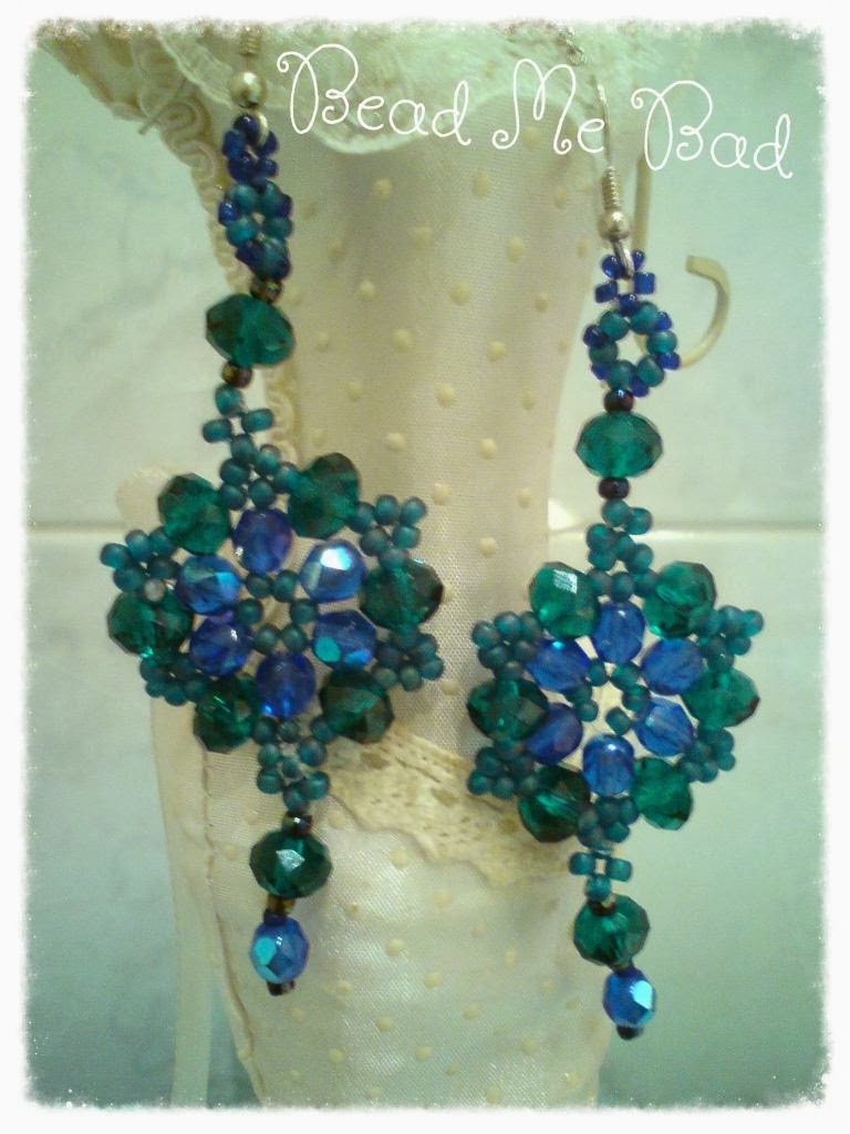 Nie wiedziałam z czym je połączyć. Czy zrobić oprawę z koralików, czy z sutaszu i przede wszystkim z jakim kolorem! Postawiłam na ciemny granat i czarne oraz złote koraliki. Myślę że wyszły nieźle.